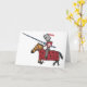 A medieval knight riding in a jousting tournament. Wears helmet with ribbons, armor and carries a lance and shield. The horse wears a coat. A fun cartoon style image for modern day jousters and fans of chivalry and jousting.