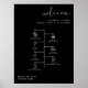 This wedding icon timeline and welcome sign features an edgy handwritten font and modern minimalist design and an edgy black and white colour combination. Click 'click to customise further' in the personalisation section to open up the full editor. To add new icons, visit https://www.svgrepo.com/ and search the icon you need. Download as an svg and then drag and drop it into the Zazzle editor. Change the colour of the icon on the right-hand side of the editor.