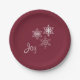Joy and Three Snowflakes Minimal Red and White Paper Plate
