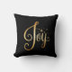“Joy” Black Gold Script Elegant Holiday Seasonal Cushion