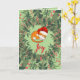 This new fully customizeable watercolor Joy holidays cat folded greeting card design features a cute sleeping striped orange tiger cat wearing a Santa hat while encircled by a green leafy botanical holiday wreath festooned with festive seasonal pink berries.