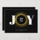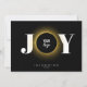An elegant black and gold "JOY" business corporate Christmas card. Customise this classy Xmas card with your logo, company name and year, greeting and QR Code.
