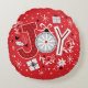 Joy Christmas Holidays Red Festive Winter Round Cushion