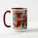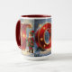 Celebrate the season with this joyful 15 oz Christmas mug featuring a magical red-and-gold "JOY" design wrapped around the entire cup. Each oversized letter sparkles with golden trim and glowing lights, while charming winter scenes unfold across the design—an adorable Christmas elf holding a lantern, a snowy pine forest, and cozy holiday details like holly, candles, and a decorated tree.