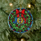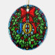 A cheerful round design featuring the word “JOY” surrounded by a festive wreath of holly leaves, red berries, and a bright red bow. The stained-glass style and vibrant colours bring warmth and holiday spirit—perfect for decorating your Christmas tree with classic charm.