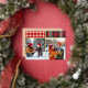 This country plaid Christmas card features two family photos with the word "JOY" and your family name printed in gold at the bottom right. Above each photo is a rectangle of cozy plaid, and the back has a beige and white dotted pattern. Upload two of your own photos, which are slightly taller than they are wide. The photo on the right needs a darker area at the bottom to help contrast with the lettering. This card is a fun and easy way to send your Christmas sentiment and share smiles without having to write on each card. Choose the envelope style you want with the card.