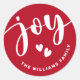 Joy cute script typography red name Christmas Classic Round Sticker