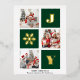 JOY Elegant Gold Snowflakes Modern Script on Sage Green colour 3 Photo Collage Real Foil Holiday Postcard. Send Holiday Greetings to your loved ones with this festive and Modern Holiday Card. All the texts are pre-arranged for you to personalise easily and quickly with your own details. Happy Holidays!