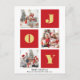 JOY Elegant Gold Snowflakes Modern Script 3 Photo Collage on Red and Green Festive Postcard. Send Holiday Greetings to your loved ones with this minimalist and modern Christmas Holiday Postcard. All the texts are pre-arranged for you to personalise easily and quickly with your own details. Happy Holidays!