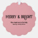 Merry and Bright | Stylish Modern with personalised  Xmas Ornament Card. Simple, stylish, minimalist christmas ornament with a modern minimalist typographic quote "merry & bright" in black on a clean minimal white background. The name, year and greeting can be easily customised