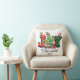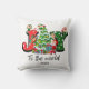 Beautiful Christmas cushion. In the centre the word “Joy” stands out in a festive typography, surrounded by Christmas elements such as Elves around a cute Christmas tree with gifts. At the bottom of the cushion there is a space reserved to personalise the last name. It can be with a beautiful font, as if it were a special gift for that particular family. In addition, you can customise it very easily by simply editing the template with the name and year you want.