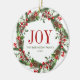 Joy Family Name Christmas Wreath Ceramic Tree Decoration