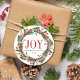 Joy Family Name Christmas Wreath Classic Round Sticker