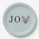 Joy Festive Reindeer Christmas Party Dusty Blue Paper Plate