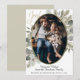 This beautiful Christmas or Holiday card features your photo in an oval shaped golden frame surrounded by hand painted watercolor pine boughs and eucalyptus leaves with the caption: Joy! Elegant shades of sage green, gold and taupe give this card a delicate wintery feel. There is room for a short greeting and signature.