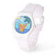 The Beach Angel Painting shows an yellow-orange angel hovering over the ocean. The word "joy" is on a cloud with a heart and has the sun peeking through. A cheerful palm tree sways towards the guardian beach angel. Make customised guardian angel watch designs with your personal messages and/or photos. Use the "customise it" button. The guardian angel art makes great personalised custom wrist watch gifts!
