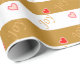 Festive joy heart pattern on striped golden and white background Gift Wrapping Paper.