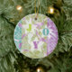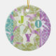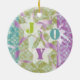 A pretty holiday keepsake ornament of purple, white, green, and teal with text that reads "JOY" on white stars.