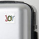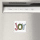 Christmas T-shirts, mugs, cards, stickers, tote bags, magnets, and other Christmas holiday clothing and gift items featuring bright holiday text that reads "JOY".