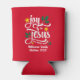 Personalized JOY IN JESUS Christian Christmas Can Cooler in RED with bold white script typography and holly. Ideal personalized Can Cooler during the festive season, with a strong Christmas message of joy in Jesus all year round. You can PERSONALIZE with your family or group name and year. Matching gifts available. This would make an ideal festive stocking stuffer or coworker white elephant gift.
