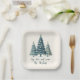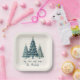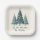 Joy, Love and Peace Blue Chequered Christmas Trees Paper Plate