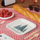 Enjoy your holiday food even better with these beautiful plates and napkins in blue chequered Christmas trees and matching text