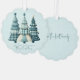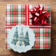 Add this beautiful ornament card to your friend and family list in blue chequered Christmas trees and matching text.
