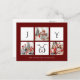 Send customisable and personalised holiday greetings to friends, colleagues and family in simple, chic, elegant and modern 3 photo collage design festive, natural minimalist style cards! On the front, a three photo collage surrounded by the word " joy " with a cute reindeer face in modern typography is featured in a beautiful maroon red background. Below the calligraphy features your custom greeting message from your family name in modern typography.