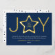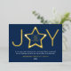 Joy Modern Gold and Navy Blue Logo Star Ornament Foil Holiday Card