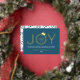 Joy Modern Gold and Teal Blue Logo Ornament Foil Holiday Card