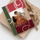 Spread the joy this holiday season with this personalized modern family photo holiday card. The design features “JOY” in bold, oversized rose gold foil lettering, creating a striking and festive focal point. A square photo placeholder sits at the center of the card, seamlessly layered within the lettering for a clean, modern look. Rich bold color blocks in green, red, burgundy, and warm beige add a contemporary holiday palette while keeping the design timeless and stylish. Personalize with your family name and year to create a meaningful keepsake your friends and family will love. Original design by © Moodthology Papery.