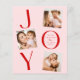 Share holiday joy with this modern Christmas photo card featuring the word ‘JOY’ in bold red letters. The design includes three custom photos placed around the letters, with the O serving as a festive frame for your holiday greeting and family name. A simple, playful layout makes this card a cheerful way to send warm wishes to friends and loved ones. The back of the card features a fourth photo and space for a personal message, perfect for sharing a yearly recap or heartfelt holiday wishes with friends and family. As part of Zazzle's budget selection, this sheet doesn't come in standard card sizes. To get this design on a standard card, you can find it in the collection or use the Zazzle Make Machine to transfer it onto your preferred product. View the collection linked on this page for coordinating items or browse our store for more budget Christmas photo cards.
