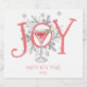 Whimsical unique illustrated JOY typography New Year's Eve party sparkling wine labels with holiday cocktail and pine boughs. Spread some cheer with this festive holiday party napkin style. Toast to a happy 2023.
