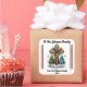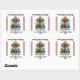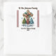 Delightful square stickers adorn beautifully wrapped gifts for Christmas, featuring a vibrant design of trees, ornaments, and cheerful typography.