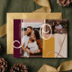 Spread the joy this holiday season with our modern bold joy rose gold foil photo holiday card. Design features "Joy" in bold large elegant rose gold foil letters. Two photo placeholders with the gold foil letter overlay. Bold colour blocks in burgundy, blush, beige, and mustard yellow. Personalise with family signature and year. Design by Moodthogy Papery.
