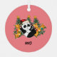 This Joy Panda Bear Christmas Metal Ornament will take pride of place on your Christmas tree this year. With a luxurious white ribbon to hang it and the option of a cute gift pouch to hold it. You can personalise this ornament with a year, name and background colour.