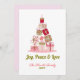 Elegant non-photo holiday card .This chic and stylish "Joy, Peace & Love" holiday card features a modern and minimal Christmas tree with red and pink gifts accents. The elegant text can be completely personalised with your choice of greeting, family name, year, and a custom message inside the card.