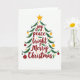 Brighten someone’s holiday with a beautifully designed Christmas greeting card 🎄 This card features a Christmas tree illustration on a white background, made up of festive words like joy, peace, and Merry Christmas in red cursive font. The tree is adorned with green leaves, yellow dots, a yellow star topper, and a red and white ornament hanging from the side 🌟 The overall design is simple yet cheerful, perfect for spreading holiday cheer to your loved ones this season 🎁✨.