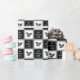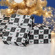 Lend a modern yet festive touch to your gifts this holiday season with this pretty chequered wrapping paper. Design features alternating black and white squares with "Joy Peace Love" in modern white block typeface, and red and green hollyberry illustrations.