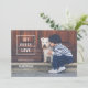 These holiday photo cards have a modern, minimalist vibe, and put your family photo in the spotlight. Design features a white square outline box with "Joy, Peace, Love" inscribed inside in white block typeface. Three lines of customisable text allow you to add a message, your name(s), and the year. Text fields can easily be moved to suit the layout of your photo.