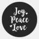 Joy Peace Love Red Brushed Script Womens Holiday Classic Round Sticker