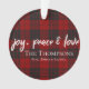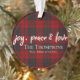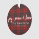 Joy Peace Love Red Plaid Photo Christmas Tree Ornament