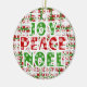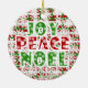 Red, white, and green text design holiday keepsake ornament reads "Joy Peace Noel"!