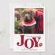 Spread JOY this holiday season with this modern and stylish holiday pet photo christmas card perfect for dog lovers and cat lovers! This pet Christmas card features your favourite photo with the word JOY in a fun playful modern retro typography style and a realistic paw print. Add your photo and your personal message to this elegant fun holiday pet photo design and make it your own one-of-a-kind original holiday card. PHOTO TIP: Pre-crop your photo BEFORE uploading and/or use the CROP tool in the PERSONALIZE section to adjust placement within the template area. For help with design or personalisation or transferring design to another product, contact designer via the chat button. COPYRIGHT © 2022 Judy Burrows, Black Dog Art - All Rights Reserved. JOY Personalised Pet Photo Red Paw Print Dog Holiday Card