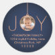 Celebrate the simple joys of the season with these custom photo navy blue and faux copper round return address labels / envelope seals. Text on this template is easy to customise. (IMAGE PLACEMENT TIP: One way to centre a photo exactly how you want is to crop it before uploading to the Zazzle website.) Design features a luxurious metallic look JOY ornament, modern minimalist family name, chic simple typography, and one picture of your choice. Please note that copper is printed colour, not foil. Makes a stylish and elegant personalised finishing touch to Christmas holiday cards and invitations.
