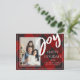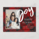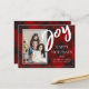 Joy Red Black Plaid Tartan Photo Happy Holiday Postcard. Send out these Custom Photo Holiday Postcard to friends and family this holiday season. The design has JOY written in bold brush font.