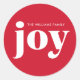 Joy Red Holiday Christmas Minimalist Classic Round Sticker