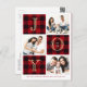 JOY | Red Plaid Photo Collage Christmas Holiday Postcard