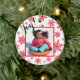Joy! Red & White Snowflakes Round Christmas Photo Ceramic Tree Decoration