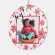 This festive Christmas ornament features your photo surrounded by a bounty of red snowflakes on a white background with the caption: Joy! Beautiful gift or keepsake memento. The back has space for your own message.